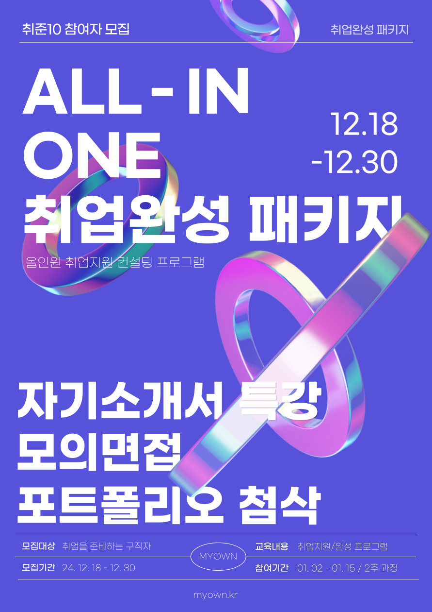 취준10 올인원 취업완성 패키지로 나의 역량과 강점을 살려 취업 경쟁력을 완성하세요.