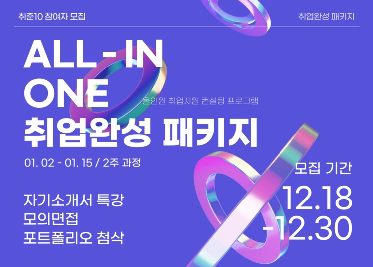취준10 올인원 취업완성 패키지로 나의 역량과 강점을 살려 취업 경쟁력을 완성하세요.